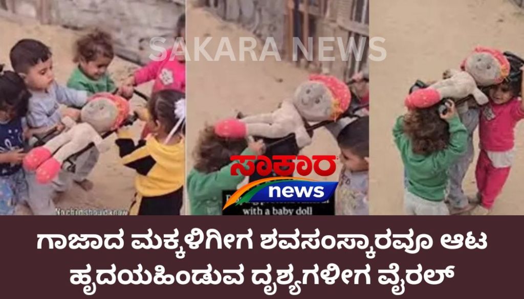 ಸಾಮಾಜಿಕ ಜಾಲತಾಣಗಳಲ್ಲಿ ಹರಿದಾಡುತ್ತಿರುವ ಈ ವಿಡಿಯೋದಲ್ಲಿ, ಮೂರು-ನಾಲ್ಕು ವರ್ಷದ ಪುಟಾಣಿ ಮಕ್ಕಳು ಸೇರಿ ಒಂದು ಬಿಳಿ ಬಟ್ಟೆಯಲ್ಲಿ ಸಣ್ಣ ಗೊಂಬೆಯನ್ನು ಸುತ್ತಿದ್ದಾರೆ. ಯುದ್ಧದಲ್ಲಿ ಮೃತಪಟ್ಟವರನ್ನು ಕೊಂಡೊಯ್ಯುವ ರೀತಿಯಲ್ಲೇ ಸಣ್ಣದೊಂದು ಸ್ಟ್ರೆಚರ್ ತಯಾರಿಸಿ, ಅದರ ಮೇಲೆ ಗೊಂಬೆಯನ್ನು ಮಲಗಿಸಿ, ತಮ್ಮ ಪುಟ್ಟ ಭುಜಗಳ ಮೇಲೆ ಹೊತ್ತು ಸಾಗುತ್ತಿದ್ದಾರೆ. ಇನ್ನು ಕೆಲವು ಮಕ್ಕಳು ಈ ‘ಶವಯಾತ್ರೆ’ಯ ಹಿಂದೆ ಸಾಲಾಗಿ ನಡೆದು ಬರುತ್ತಾ, ಗಾಜಾದಲ್ಲಿ ಅಂತ್ಯಸಂಸ್ಕಾರದ ವೇಳೆ ಕೂಗುವ ಘೋಷಣೆಗಳನ್ನು ಅನುಕರಿಸುತ್ತಿರುವುದು ಕಂಡುಬಂದಿದೆ.